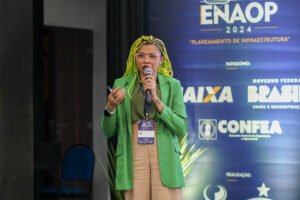 A última divulgação da noite de abertura do Encontro Nacional de Auditoria de Obras Públicas – o EBAOP 2024 – foi feita pela doutoranda em Engenharia de Transportes (COPPE/PET) e assessora técnica do TCE-MS, Claudeny Santana. Ela apresentou o trabalho do grupo do Ibraop, responsável em elaborar Procedimento de Auditoria sobre Obras Rodoviárias.