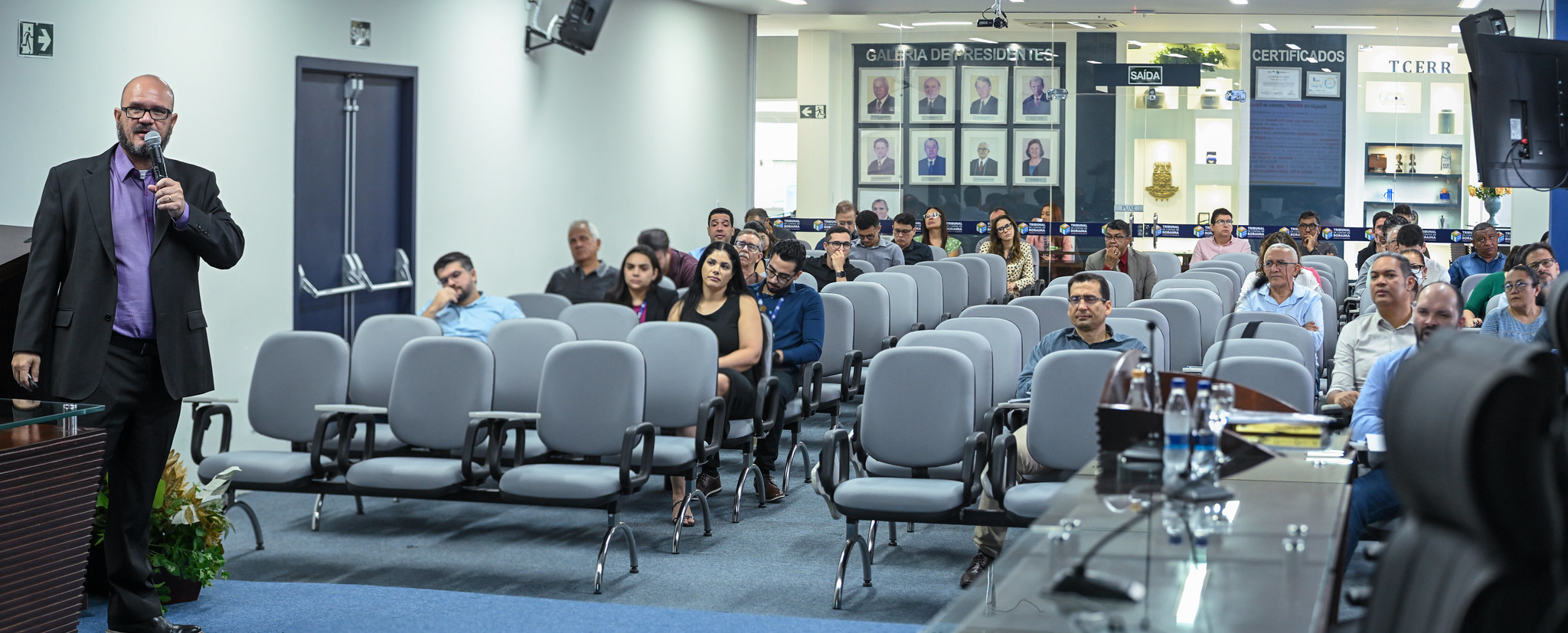 Entre os 53 servidores do TCE-RR, que lotaram o auditório do Plenário da Corte de Contas Estadual, estava o diretor do Ibraop e auditor de controle externo Aristóteles Sampaio Costa que é membro da comissão de capacitação de cursos do controle externo e um dos organizadores do evento.