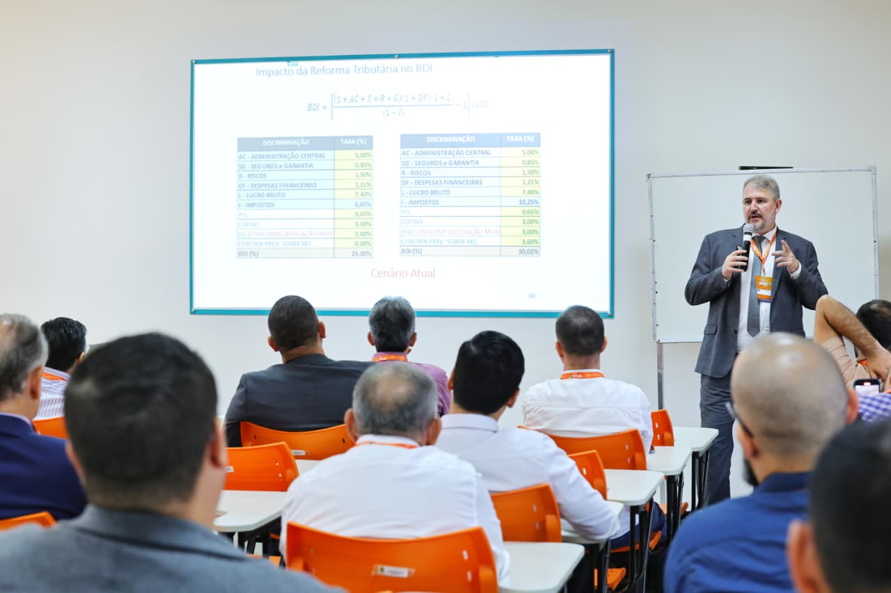 O minicurso “O impacto da Nova Lei da Desoneração da Folha de Pagamento e da Reforma Tributária na orçamentação de obras” integrou a programação do primeiro dia do XXI Simpósio Nacional de Auditoria de Obras Públicas (SINAOP) e foi ministrado pelo auditor federal André Pachioni Baeta, do Tribunal de Contas da União (TCU). A atividade teve como foco apresentar aspectos técnicos e implicações da Reforma Tributária instituída pela Emenda Constitucional nº 123/2023.