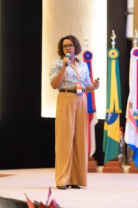 A palestra da coordenadora geral de Licenciamento Ambiental do Ministério dos Transportes, Camila Lourdes da Silva, encerrou o sétimo painel do XXI SINAOP, nesta sexta-feira (22). “Retomada da BR-319 sob o ponto de vista do Ministério” foi o tema da apresentação que trouxe uma visão geral do projeto de recuperação e pavimentação da rodovia BR-319, que conecta Manaus (AM) a Porto Velho (RO), detalhando seus principais marcos históricos e os desafios ambientais e sociais associados.