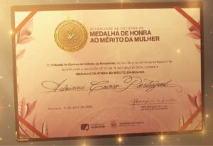 A presidente do Instituto Brasileiro de Auditoria de Obras Públicas (Ibraop), Adriana Portugal, foi agraciada pelo Tribunal de Contas do Amazonas (TCE-AM) com a Medalha de Honra ao Mérito à Mulher. A emocionante solenidade, realizada nesta quinta-feira (16), celebrou o segundo aniversário da Ouvidoria da Mulher homenageando diversas personalidades femininas que se destacam pela força e resistência.